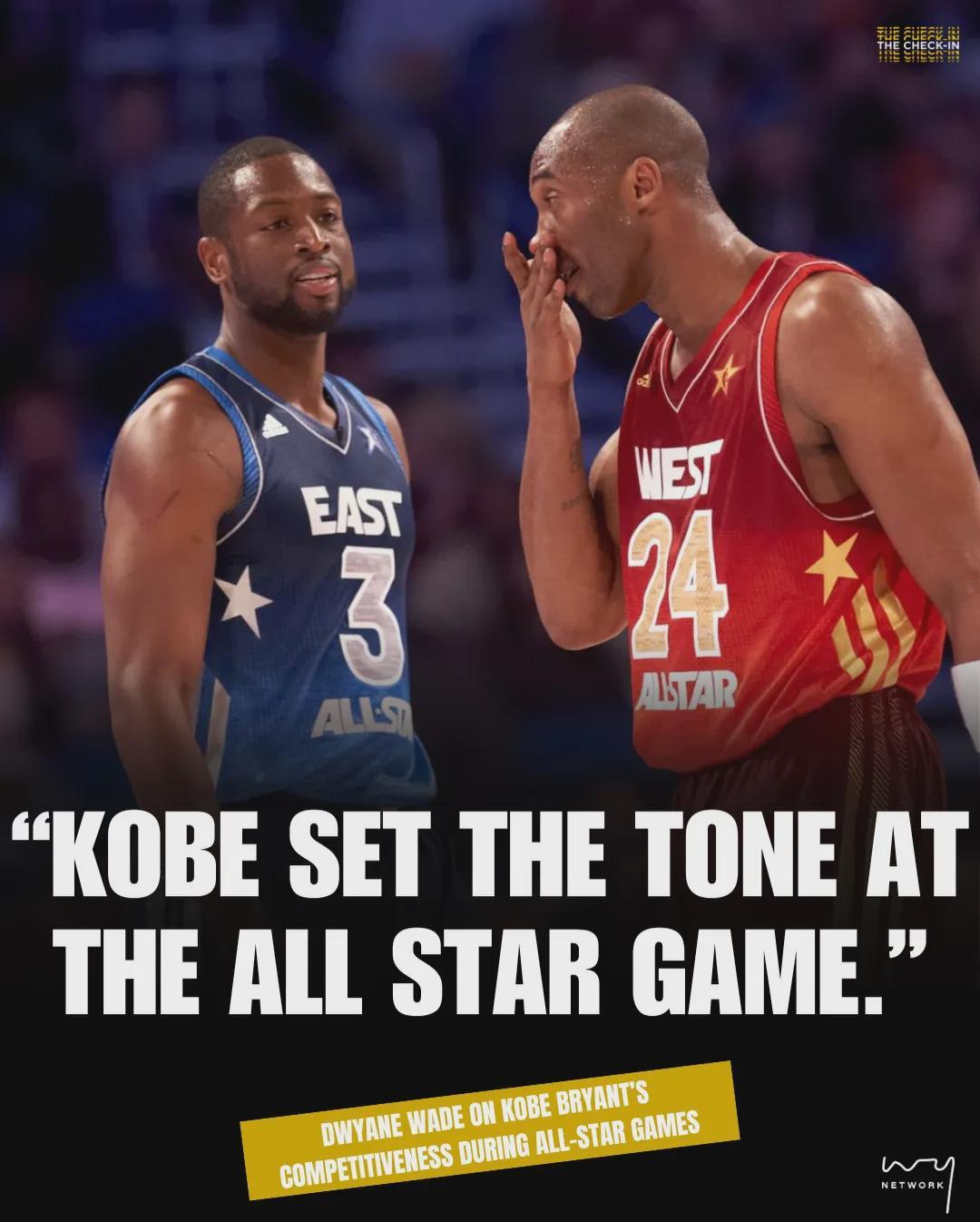 韦德还谈到他在全明星把科比的鼻子打骨折:“那届全明星,科比不断冲击我。我不是故意要打断他的鼻子,但我确实想狠狠犯规阻止他!赛后我专门打电话给科比道歉,结果他说‘没事,只是鼻子骨折了。我喜欢这种对抗!’”