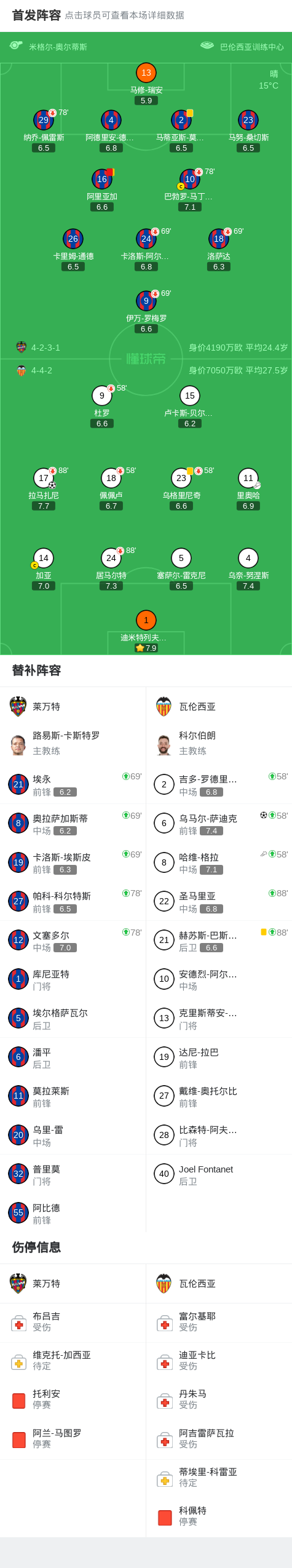 北京时间2月16日西班牙足球甲级联赛 联赛 第24轮,莱万特主场对阵瓦伦西亚。瓦伦西亚拉马扎尼破门,乌马尔-萨迪克破门。最终比分莱万特 0-2 瓦伦西亚。