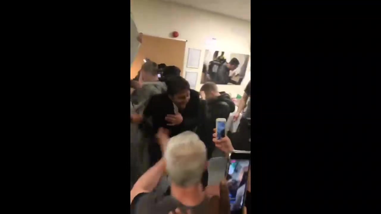 喜笑颜开范乔丹在球员通道开心表示拿下胜利启程赌城